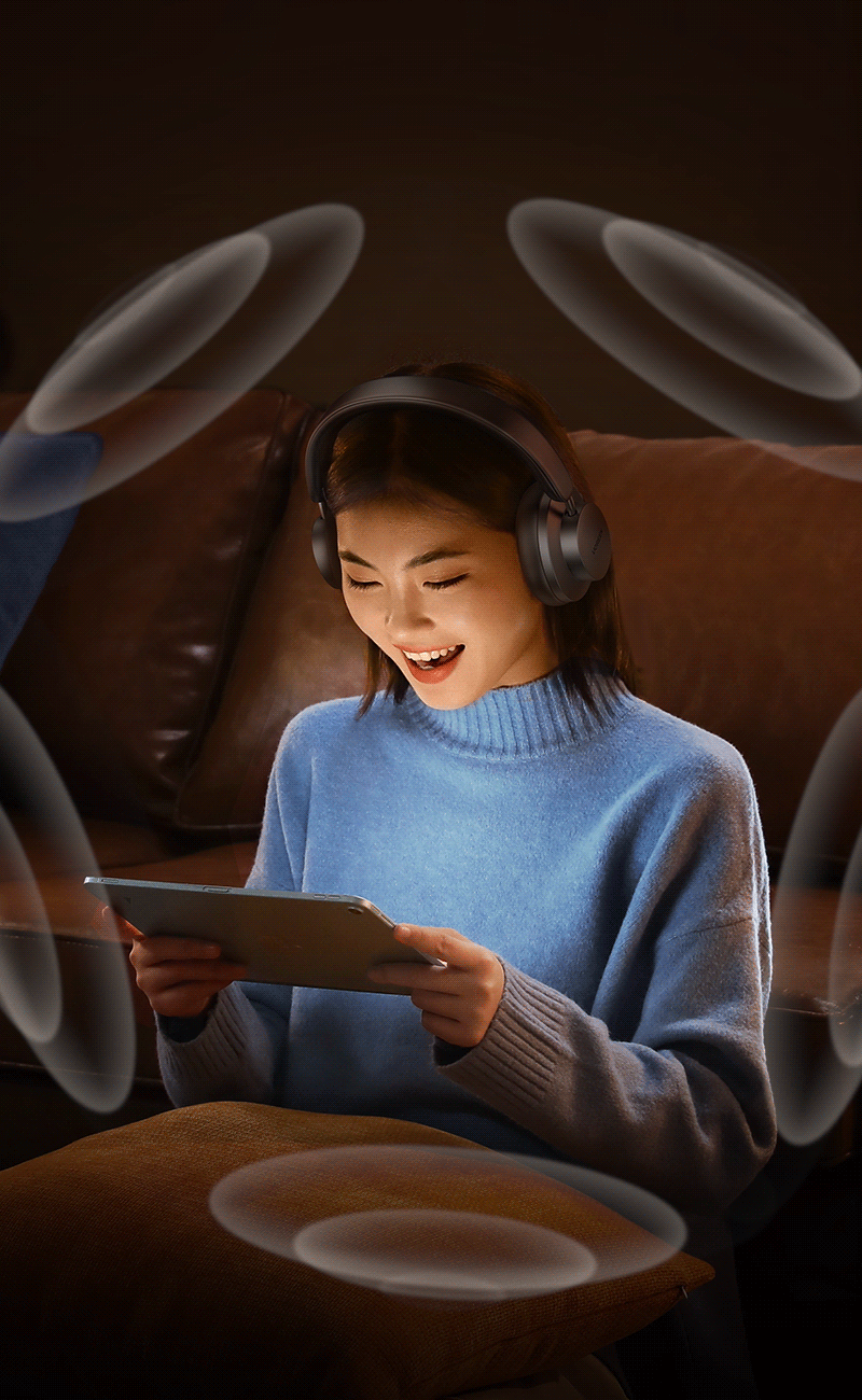 2.「全场景」指该功能不局限于手机品牌、应用类型,可以兼容大部分设备、APP、音视频使用。绿联头戴式耳机是国内首款可以全场景适配空间音频的蓝牙耳机。