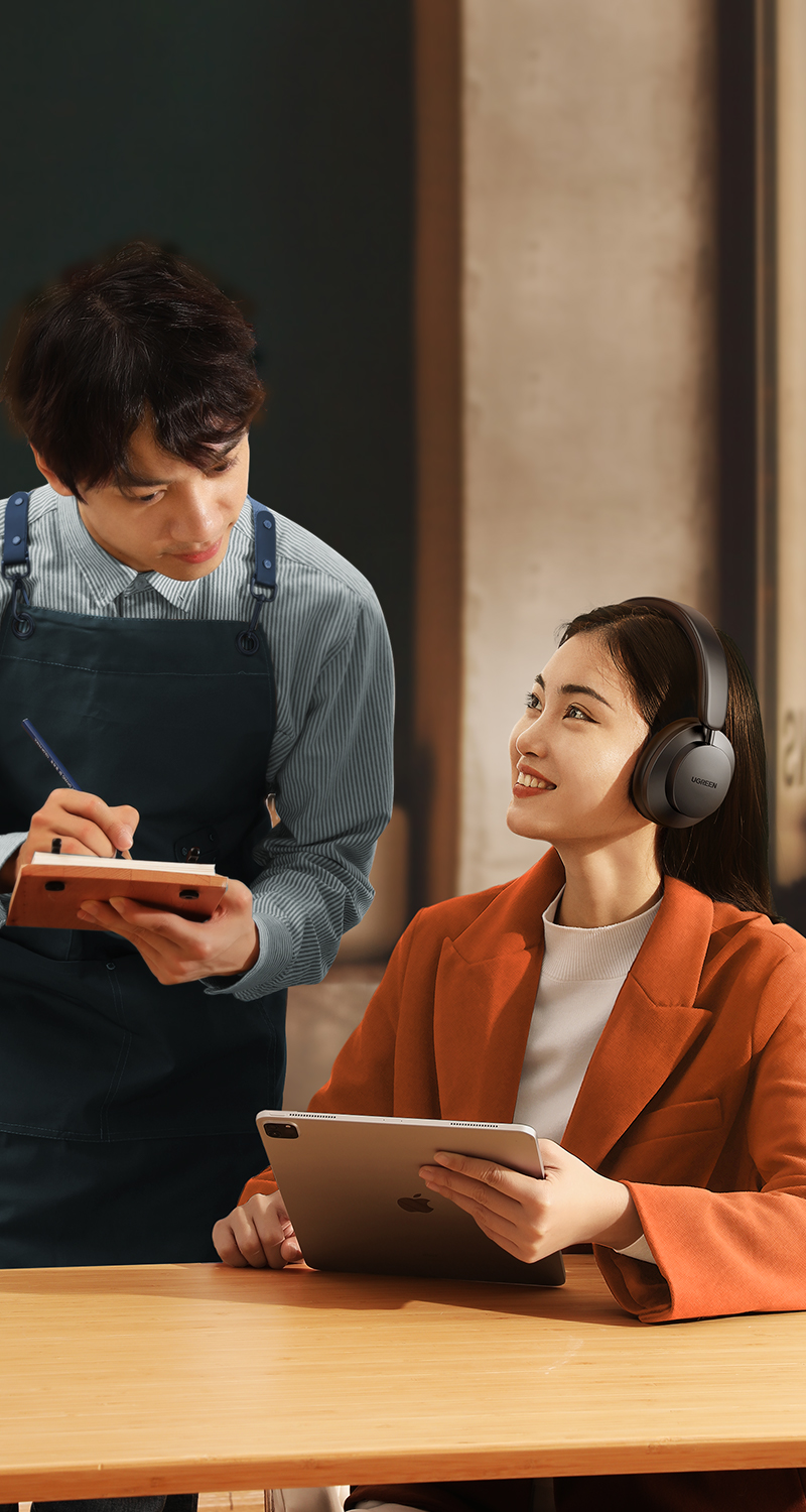 6.充电及续航数据来自绿联声学实验室。在音乐模式下,默认未开启主动降噪和3D空间音频,使用AAC音频解码格式,以60%音量测得。