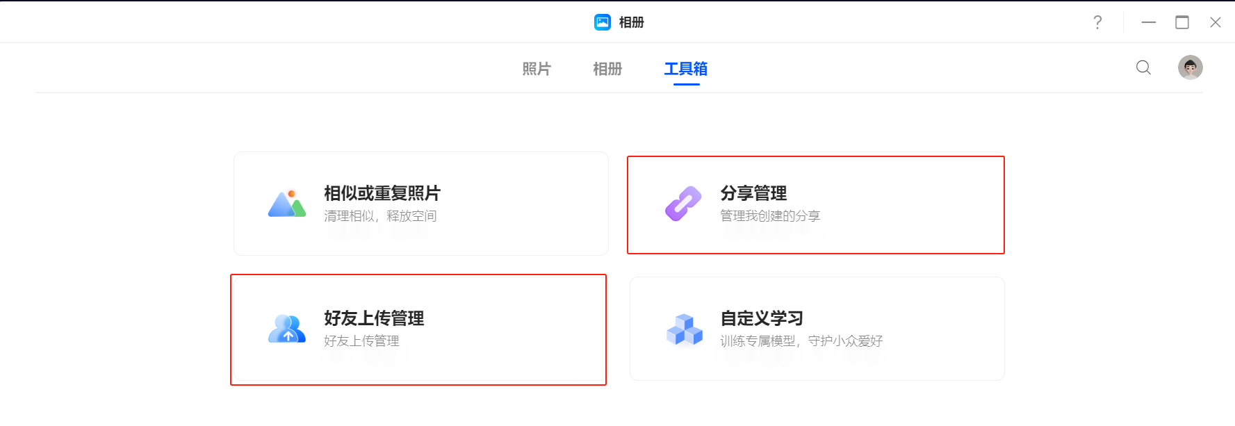 您可以在【相册>工具箱】页面,对分享的链接进行管理。