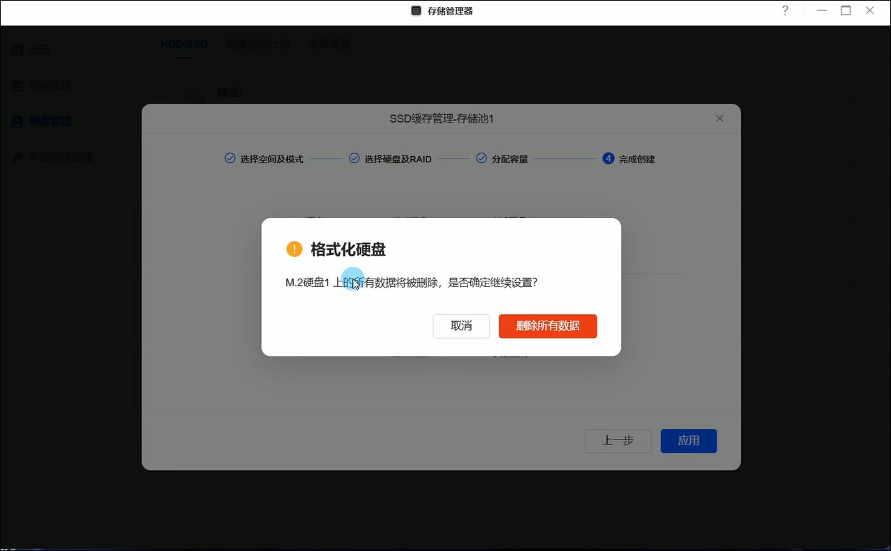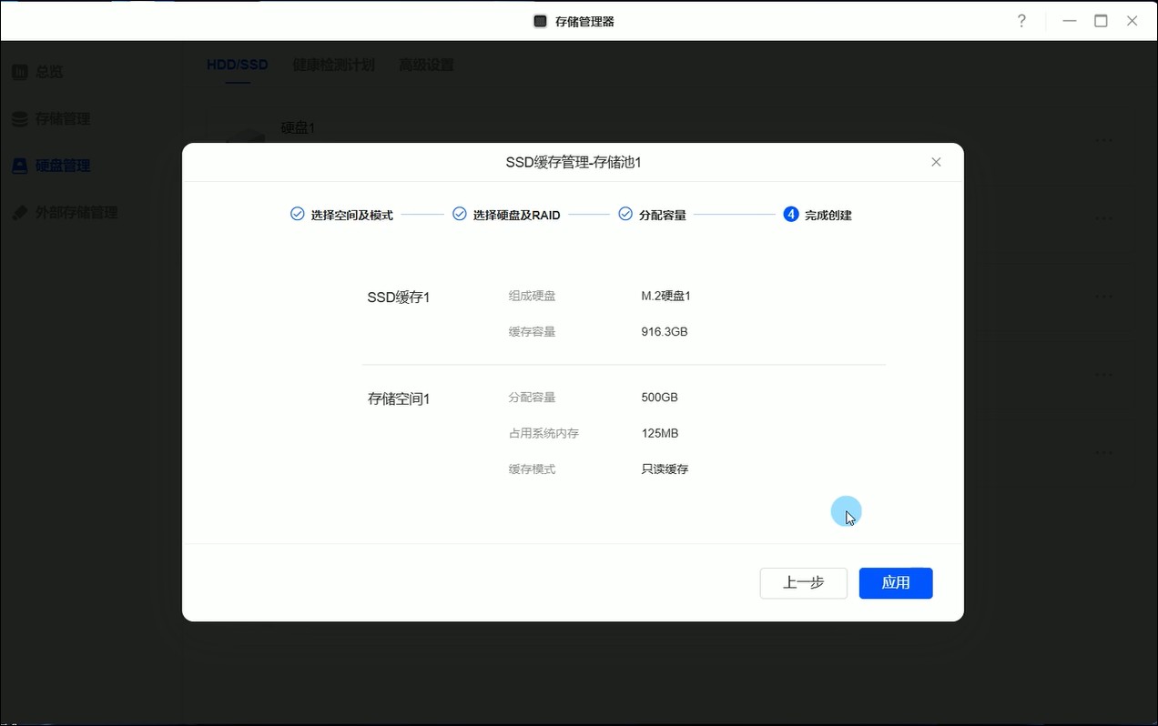 查看并确认 SSD 缓存配置信息,点击“应用”。